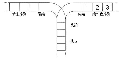 使用这两种操作,由一个操作数序列就可以得到一系列的输出序列,下图所示为由1 2 3123生成序列2 3 1231的过程。