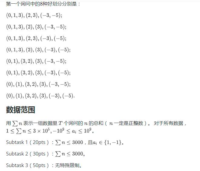 接下来会有 T 组询问, 每组询问的第一行是一个正整数 n,表示数列的长度,然后下一行有 n 个整数 a1,a2,a3...an。