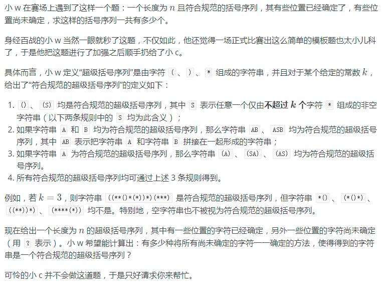 第二行,一个长度为 n 且仅由 (、)、*、? 构成的字符串 S。