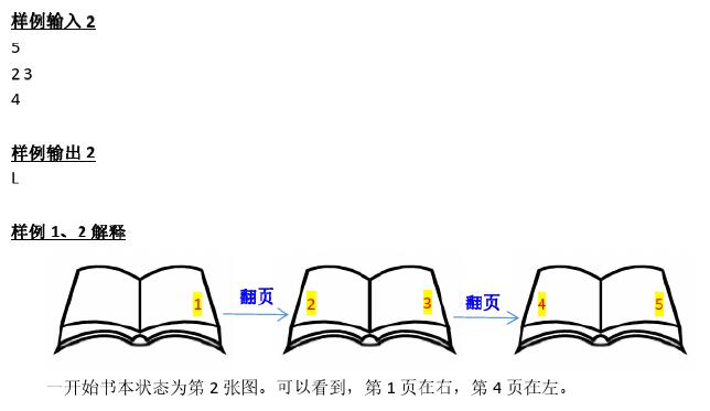 一行一个字母L或者R,第A页在左边输出L,第A页在右边输出R