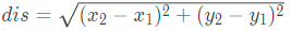 对于平面上的两个点 (x1,y1),(x2,y2),则这两个点之间的距离