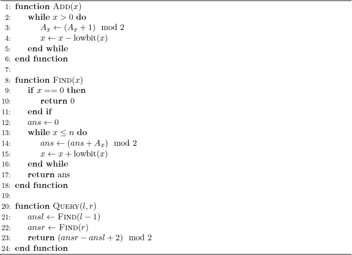 其中 lowbit(x) 表示数字 x 最低的非 0 二进制位,例如 lowbit(5)=1,lowbit(12)=4 。