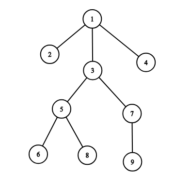 如果遍历根节点为 1 号节点的子树,则子树内各节点的遍历顺序为 [1,2,3,5,6,8,7,9,4]。