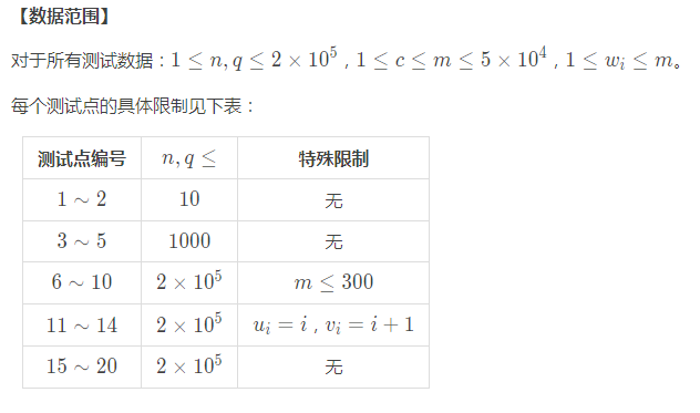 每座城市的集市上都会出售宝石,总共有 m 种不同的宝石,用 1∼m 编号。i 号城市的集市出售的是第 wi 种宝石,一种宝石可能会在多座城市的集市出售。