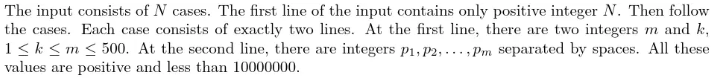 2 9 3 100 200 300 400 500 600 700 800 900 5 4 100 100 100 100 100