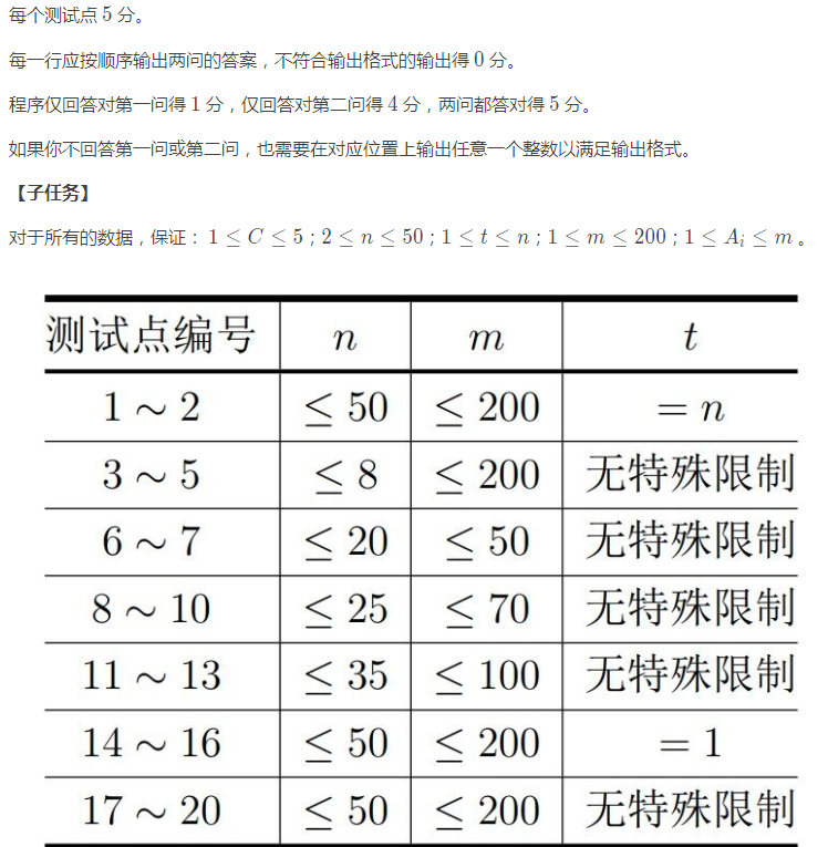 给定一个长度为 n 的正整数数组 A,其中每个数都在 1 到 m 之间,从左到右排成一排。现在要将每个数字染成红色或者绿色,我们定义一个染色方案为优秀的染色方案,当且仅当它满足: