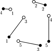 Bill would like to connect each ant colony to a single apple tree so that all n routes are non-intersecting straight lines. In this problem such connection is always possible. Your task is to write a program that finds such connection.