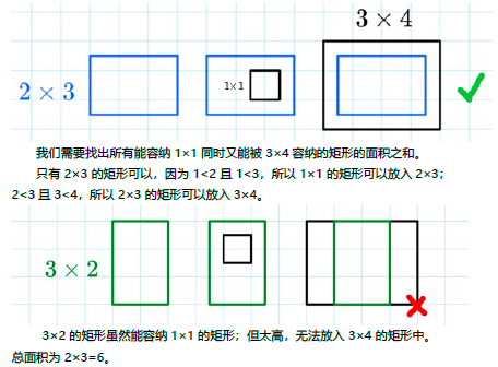 注意:如果两个矩形具有相同的高度或宽度,那么它们就不能相互容纳。另外,矩形不能旋转。