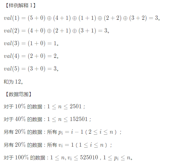 接下来一行 n−1 个正整数,依次表示 2 号结点到 n 号结点,每个结点的父亲编号 pi。