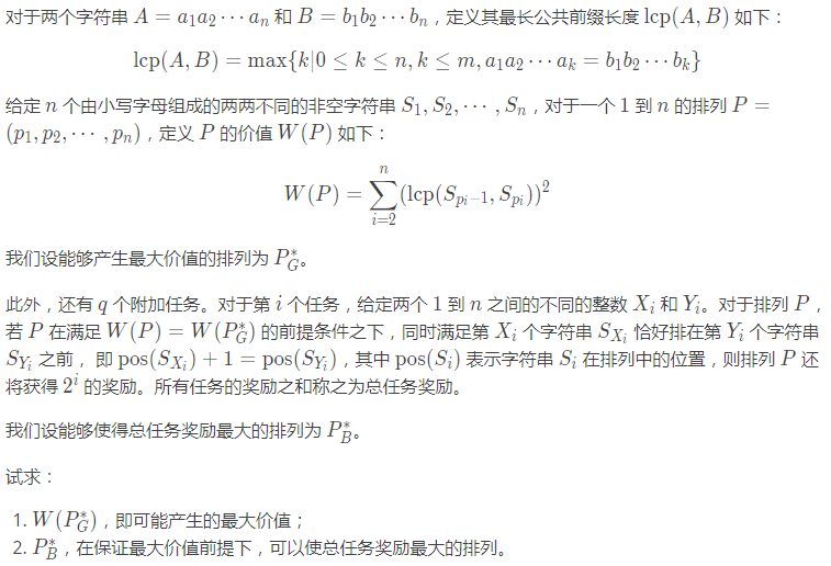 对于 100% 的数据,n≤4×104,q≤105,每个字符串的长度不超过 104,所有字符串的长度和不超过 2×105。