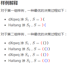 dXqwq 和 Haitang 在玩一个括号串上的游戏。