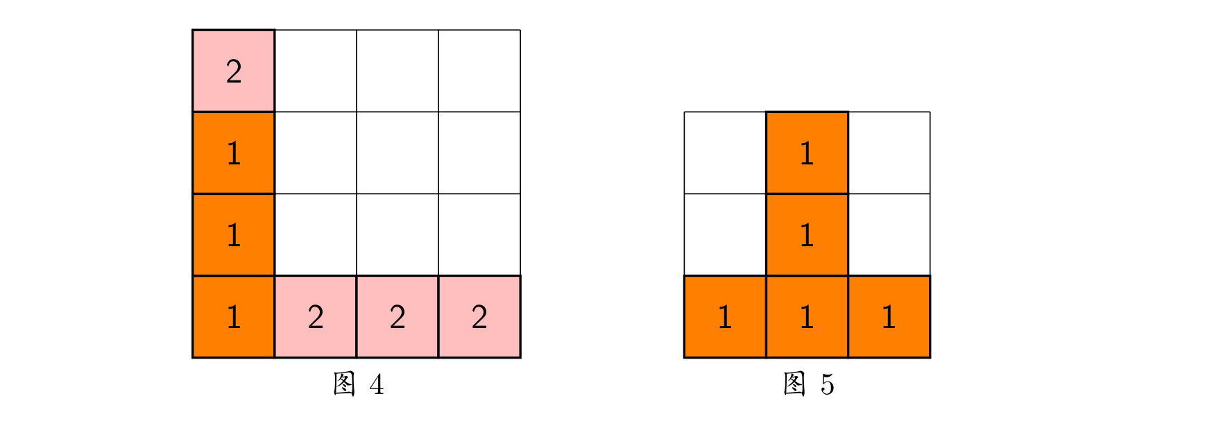 b) 当出现行和列都满足消除条件且行列共享某个方块时,行和列上满足消除条件的所有方块会被同时消除(例如下面图5 所示的情形,5 个方块会同时被消除)。