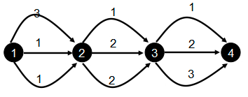 接下来m行,表示每两个相邻顶点之间有3条边的权值长度